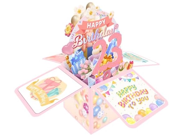 Joycard 23rd Birthday Card, Birthday Decorations for Her, Daughter, and Granddaughter, Awesome 3D Birthday Gift Box, Funny Happy Birthday Card, 23 Year Old Birthday Gift