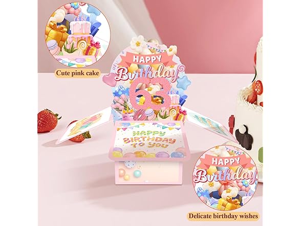 Joycard 63rd Birthday Card, Birthday Decorations for Women, Mothers, and Wife, Awesome 3D Birthday Gift Box, Funny Happy Birthday Card, 63 Year Old Birthday Gift