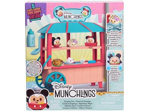 - Amazon Exclusive Disney Toy Playset: This exclusive Disney Munchlings vending cart playset comes with 5 Munchlings collectible toy figures available only in this collection.