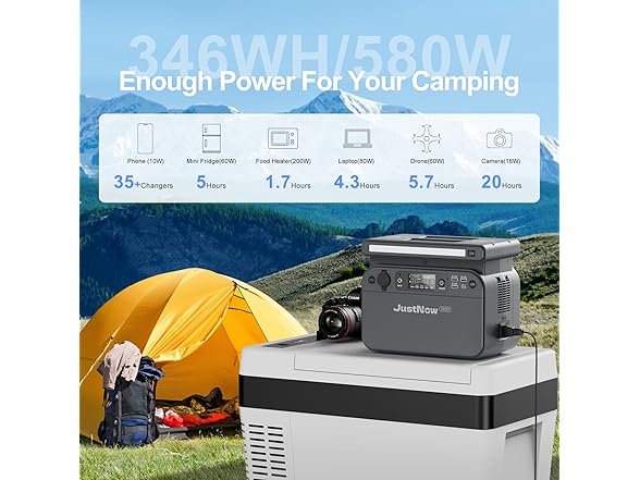 🔋【SuperSafe LiFePO4 Power Station】JustNow portable power station uses Lithium Iron Phosphate Battery Pack which has high safety and stability allowing it to be used at temperatures of -4℉ to 113℉, LiFePO4 Battery ensures a lifespan of more than 3500 cycles at 80% capacity, delivers up to 7 times longer than normal battery, and lasts for 10 years with everyday use. power your devices anywhere anytime.
