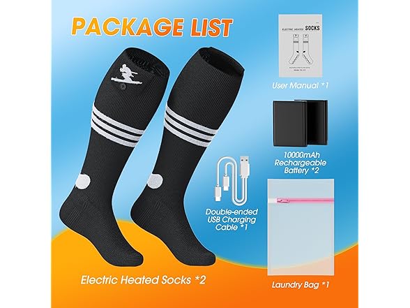 - 【Winter Essential & Machine Washable】Rechargeable heated socks are suitable for adult men and women, One Size Fits Most people in sizes 6-14. heated socks for hunting can be washed by hand or in a washing machine using the included laundry bag. Before washing, remove the batteries and store them separately. Ensure that the heated socks for neuropathy are completely dry before heating them. (The laundry bag is included in the box with the heated socks.)