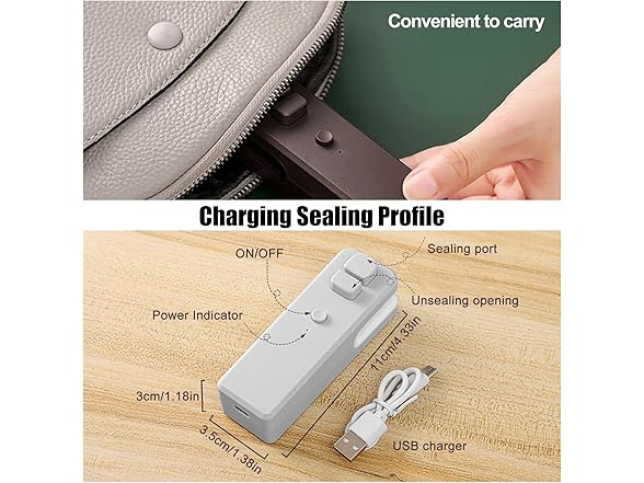 JZ Multifunctional Charge Mini Portable Handheld Heat Vacuum Sealers with Cutter for Airtight Food Storage - White
