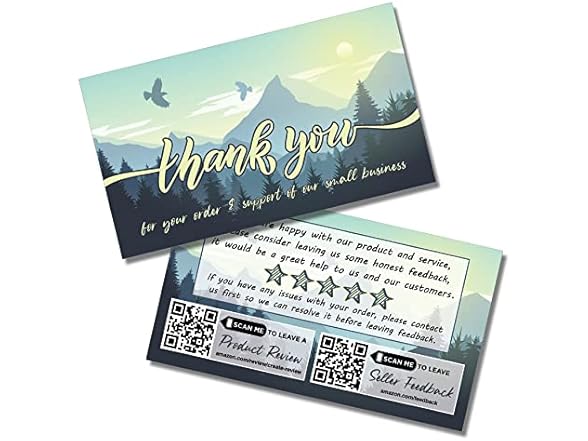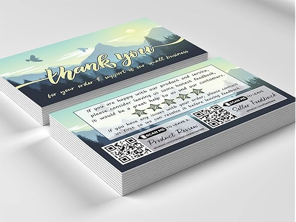 Amazon Thank You for Purchase Cards with Feedback Request & QR Code Link - 2" x 3.5" - Business Card Size - Small Business - Online Store Retailer - Package Inserts (100 Cards, Outdoors/Camping)