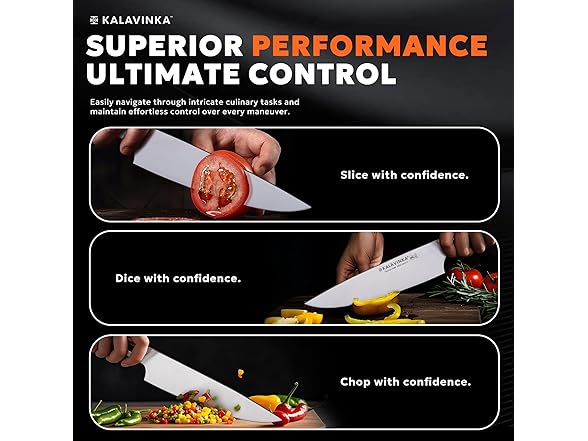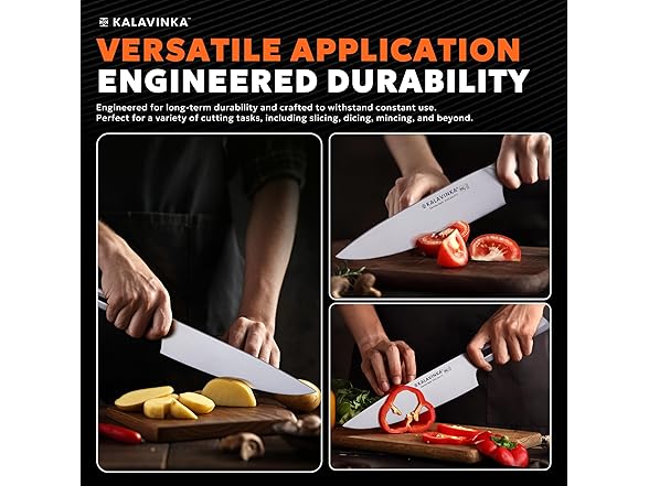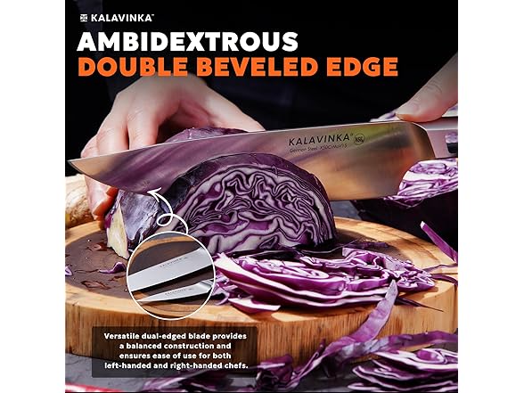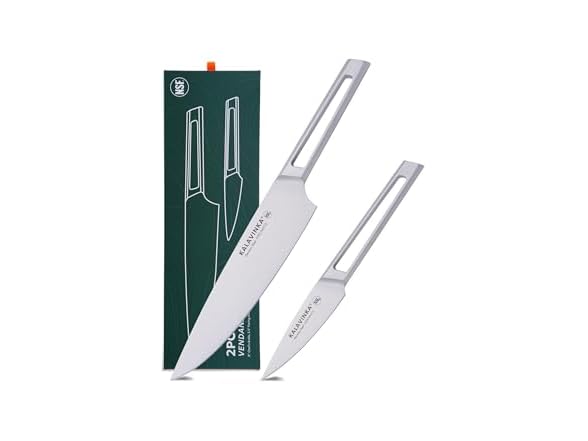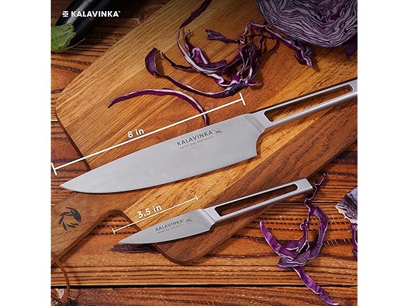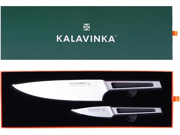 KALAVINKA 8‚ Chef Knife, German Steel Kitchen Knife with Balanced Handle and Edge Retention, Multipurpose Tool with Gift Box and Bonus Paring Knife, Backyard Barbeque (VENDANA)