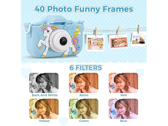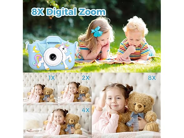 Our kids camera for girls and boys is designed for children aged 4-12, our kids' camera has a sturdy silicone case that is drop-resistant and wear-resistant, Its bright colors and cute patterns attract every curious eye. The intuitive interface makes it easy for children to take selfies or capture the happy moments with their friends, recording every magical moment in their lives. The lightweight design is comfortably manageable for small hands to hold, enabling them to explore every corner of the home and even the vast world of the outdoors. Each smile and discovery on the way to growth become cherished memories. And it's also great Christmas gifts and birthday gifts. You can choose it as a good partner for children