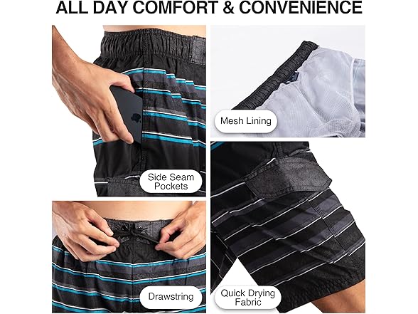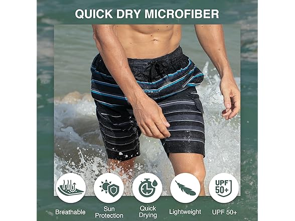 - Quick Drying Fabric: Our swimming trunks for men feature lightweight and durable microfiber fabric that dries quickly, ensuring all-day comfort whether you're swimming or lounging.