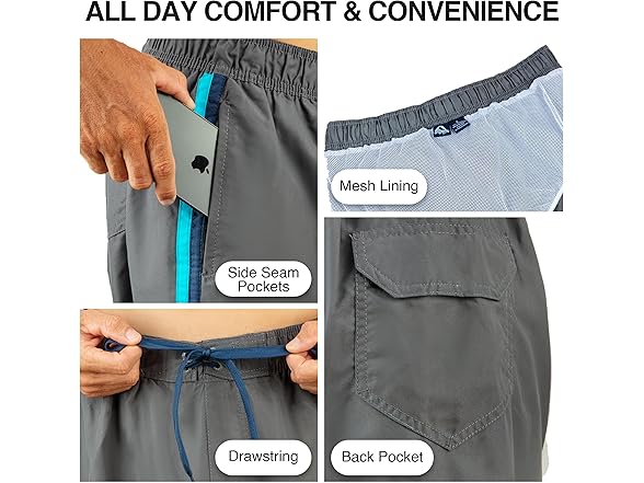 - Ample Storage: These mens swim shorts let you keep your essentials close with convenient side seam pockets, perfect for keys, wallet, or phone.