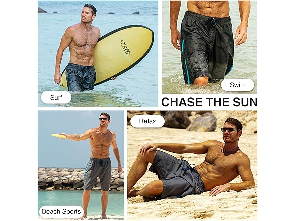 - Quick Drying Fabric: Our swimming trunks for men feature lightweight and durable microfiber fabric that dries quickly, ensuring all-day comfort whether you're swimming or lounging.