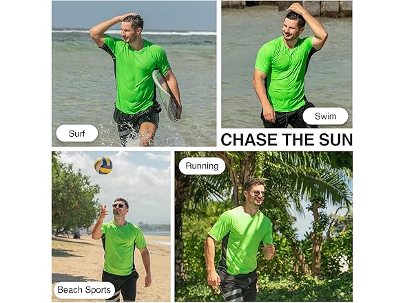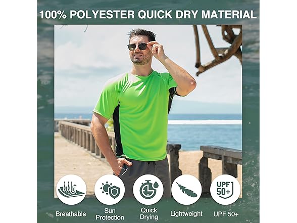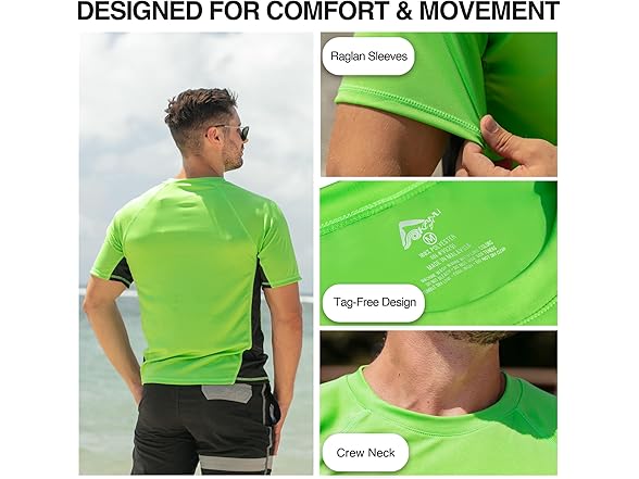 - Ready for Every Sport: Our neon green/black swim shirt for men is great for a wide range of activities, working not only as a water shirt but also as a fishing shirt, running shirt, or hiking shirt, making it a year-round staple for active lifestyles