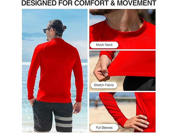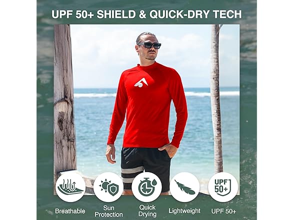 - UPF 50 Sun Protection: Our long sleeve mens swim shirt provides superior UPF 50 sun protection, ensuring you stay shielded from harmful UV rays at the beach. Ideal sun shirts for men, they are a must-have for surfers and water sports enthusiasts.