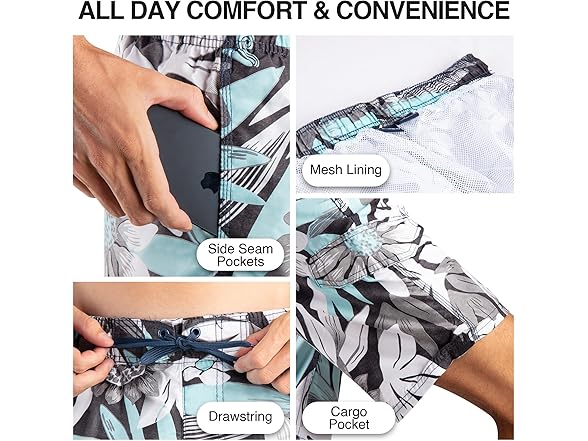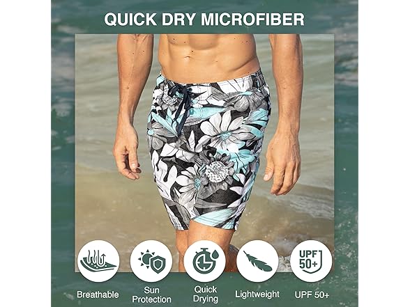 - Quick Drying Fabric: Our swimming trunks for men feature lightweight and durable microfiber fabric that dries quickly, ensuring all-day comfort whether you're swimming or lounging.