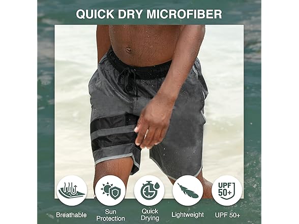 - UPF 50+ Sun Protection: Enjoy the beach with confidence in these swim trunks men, thanks to UPF 50+ fabric that shields your skin from harmful UV rays.