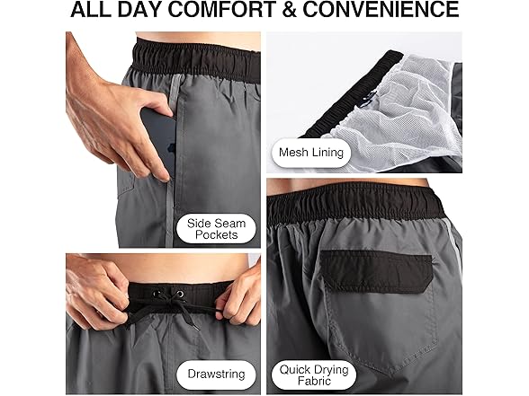 - Quick Drying Fabric: Our swimming trunks for men feature lightweight and durable microfiber fabric that dries quickly, ensuring all-day comfort whether you're swimming or lounging.