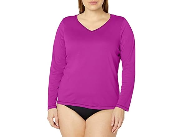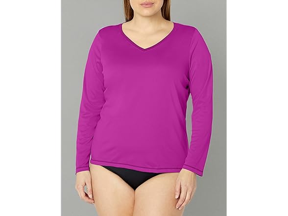 Kanu Surf Women's Plus Size Solid UPF 50+ Long Sleeve Swim Shirt Rashguard, Purple, 1X
