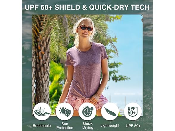 Kanu Surf Women's UPF 50+ Short Sleeved Active Swim Shirt Rashguard & Workout Top, Heather Purple, Large
