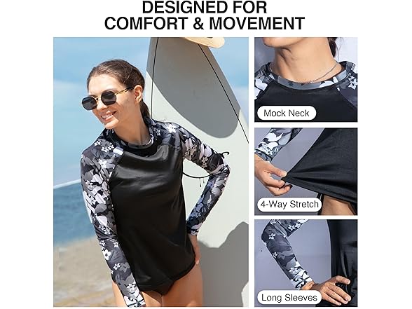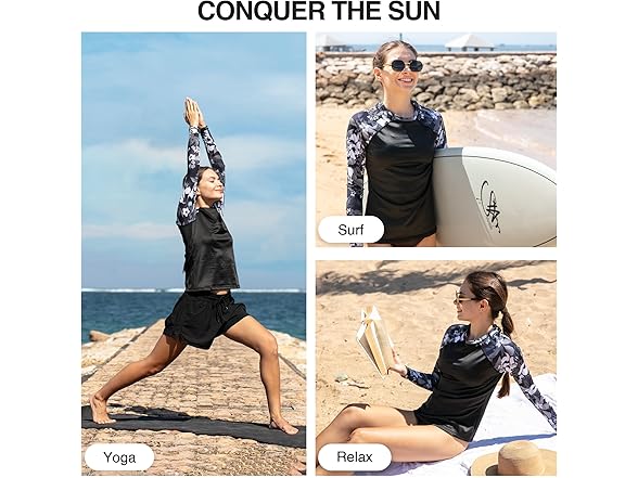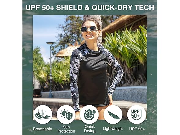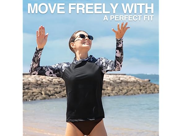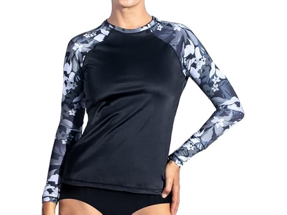 Kanu Surf Women's Keri Long-Sleeve UPF 50+ Rashguard, Eden Black, Large