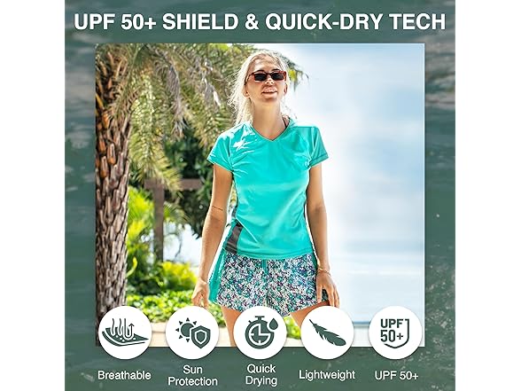 Kanu Surf Women's UPF 50+ Short Sleeved Active Swim Shirt Rashguard & Workout Top, Lagoon/Grey, XX-Large