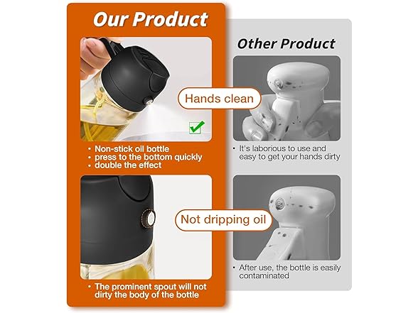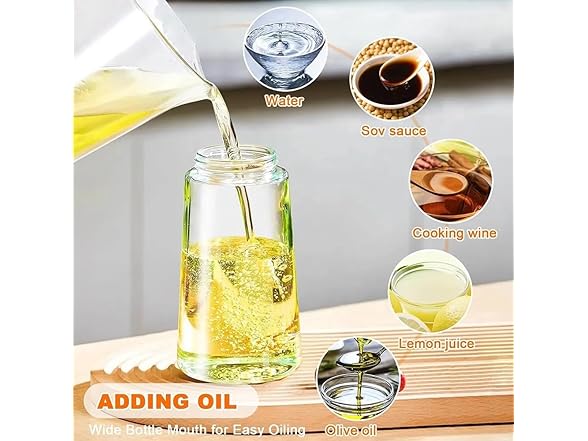 - Easy to Refill & Clean: Cooking oil dispenser is 470 ml, wide-mouth design for hassle-free refills and cleaning. Dishwasher-safe components make maintenance quick and simple.