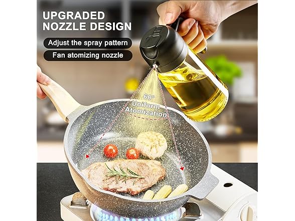 - Controlled Usage: The adjustable spout ensures easy pouring without spills, while the sprayer delivers approximately 0.2 grams of oil, a uniform mist for healthier cooking with minimal oil usage, which is easy to control and measure to manage your daily oil intake