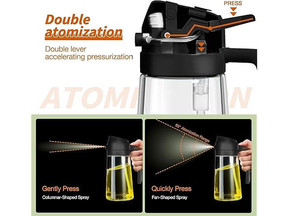 - Warm Tips: Due to quality checks, there may be minimal water in the nozzle during the first use, please spray the oil dispenser a few times to get the best performance