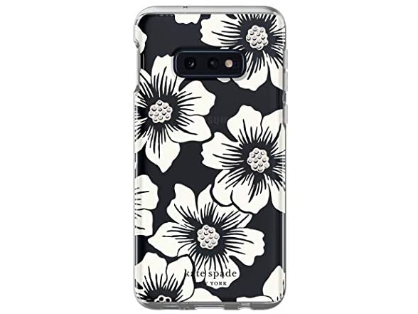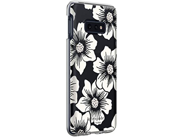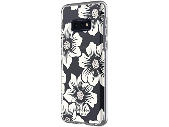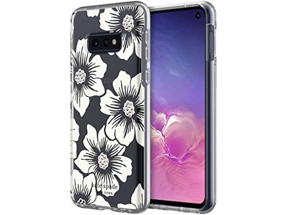 Kate Spade New York Phone Case | for Samsung Galaxy S10E | Protective Clear Crystal Hardshell Phone Cases with Slim Design and Drop Protection - Hollyhock Floral Clear/Cream with Stones