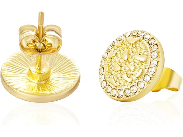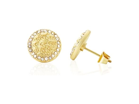 Cubic Zirconia Earrings Studs Gold nugget earrings for men Nugget earring Cookie Nugget Gold Plated Stud Earrings 14k Gold Plated Round Rough Textured For Women Unisex(M)