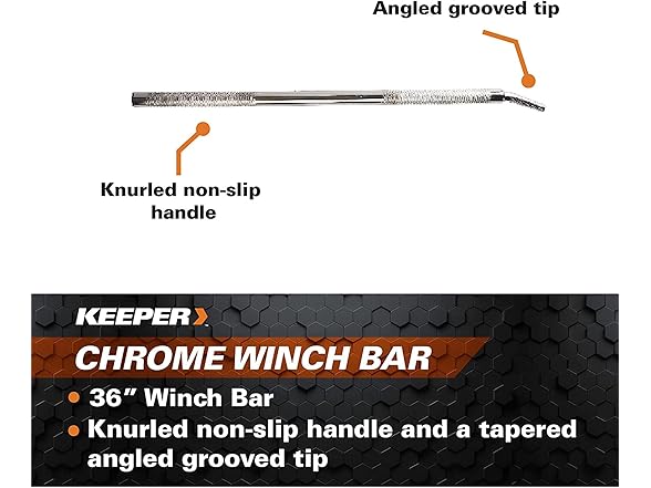Keeper - 36†Winch Bar, Chrome - Use with Bolt-On or Weld Style Deep Storage Winch