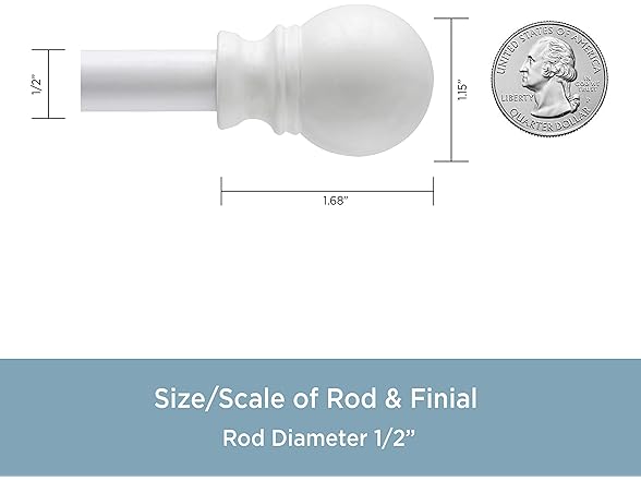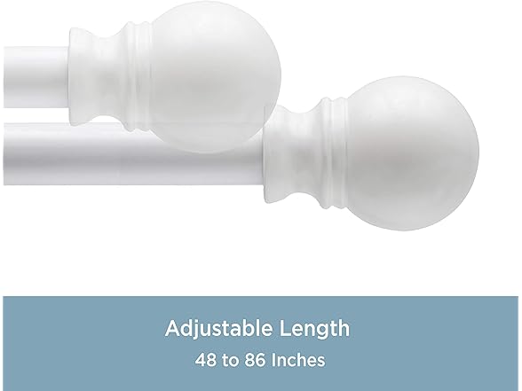 Kenney KN55251 Davenport Ball End Petite Café Decorative Window Curtain Rod, 48-86" Adjustable Length, White Finish, 1/2" Diameter Steel Tube