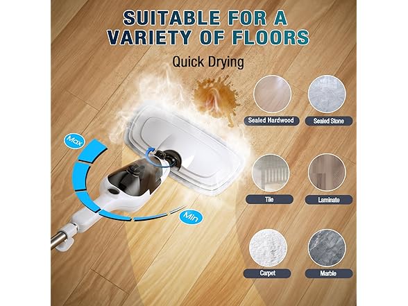 - 【Removable Water Tank & Adjustable Steam】 This steam cleaner for home comes with a removable 15.2 oz water tank, providing up to 45 minutes of continuous cleaning without interruption. It heats up in just 20 seconds, and the adjustable steam control lets you choose the perfect steam level for any mess. Tough on dirt and stains, it's great for both floors and carpets. Plus, the detachable tank makes refilling quick and hassle-free, so you can clean with ease.