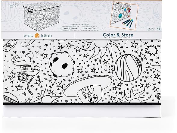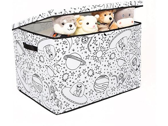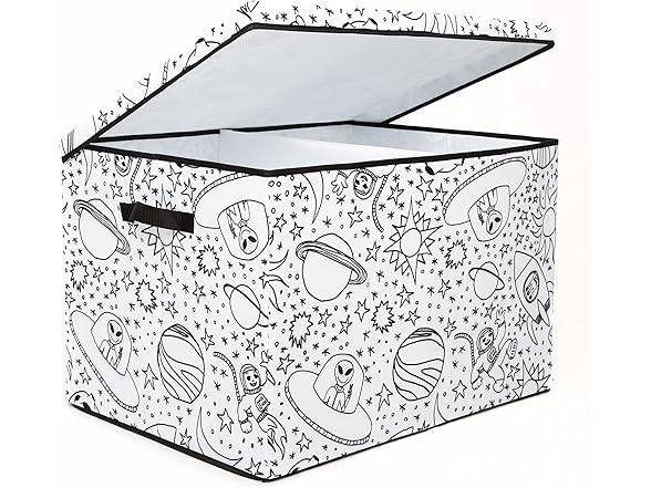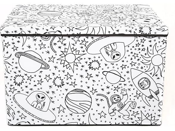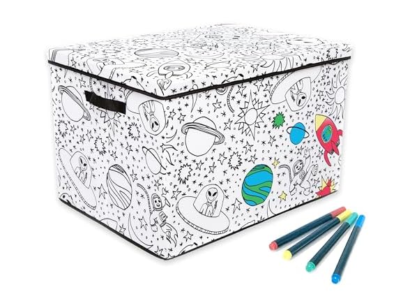 Baum - Kid's Medium Coloring Lidded Trunk, Includes Removeable Divider & 4-Pack Washable Markers, Home Organization (Space Print)