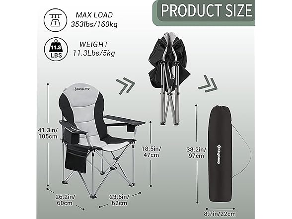 - 【Easy to Fold】This chair requires no assembly and can be set up and folded in seconds. What's more, the package size is 38.2" X 8.7" X 7.9", and it weighs only 11.3lbs, making it easy to store and transport with the included carry bag.