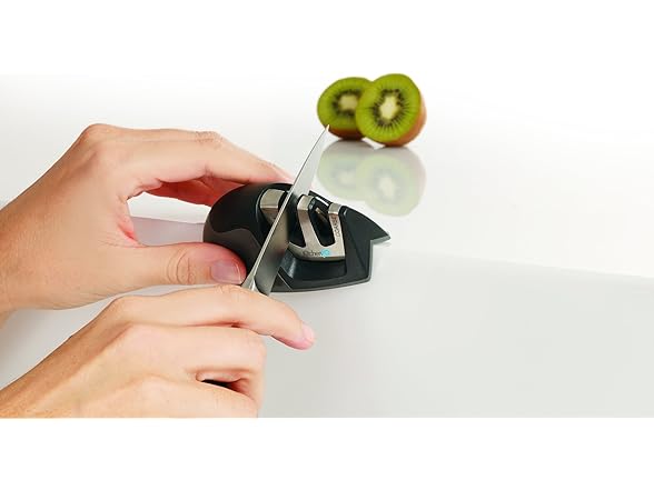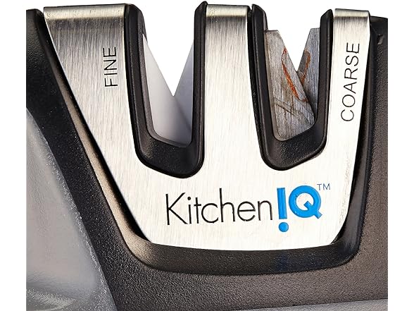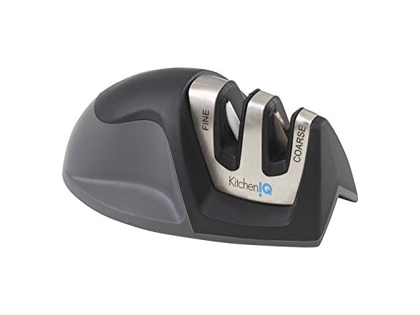 KitchenIQ 50009 Edge Grip 2-Stage Knife Sharpener, Black, Coarse & Fine Sharpeners, Compact for Easy Storage, Stable Non-Slip Base, Soft Grip Rubber Handle, Straight & Serrated Knives