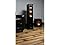 - Equally impressive with music and movies; Brushed black polymer veneer cabinet with satin painted plinth