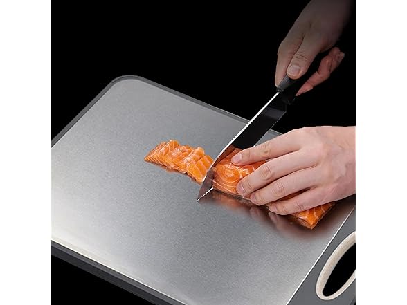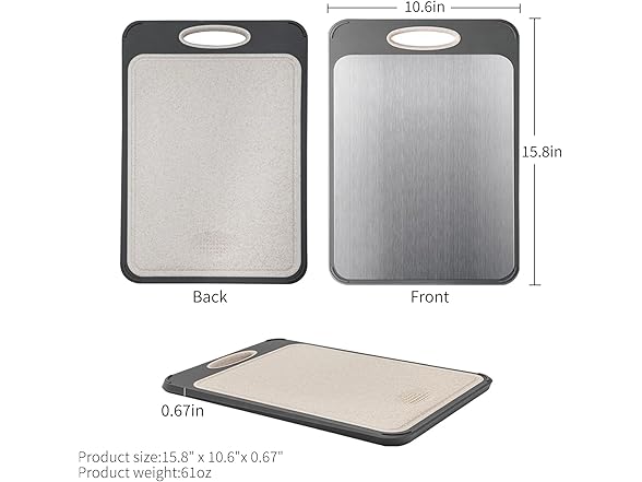 Kloahmo Large 16" x 11" Double-Sided 304 Stainless Steel Kitchen Cutting Board - Dishwasher Safe, BPA-Free; Ideal for Cutting Meats, Chicken, Fruits, and Vegetables - Perfect for Kitchen Use