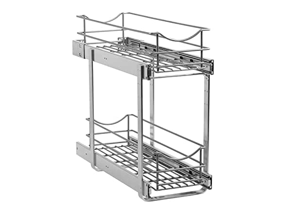 Knape & Vogt Simply Put 8in W x 14.7-in H Metal Double-Tier Pull Out Cabinet Baskets, 8 Inch, Frosted Nickel