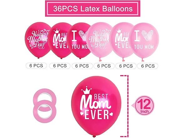 Happy Mother's Day Balloons Party Decorations Supplies - 48PCS Latex 12inch Mothers Day Party Supplies - Best Mom Ever Party Decorations