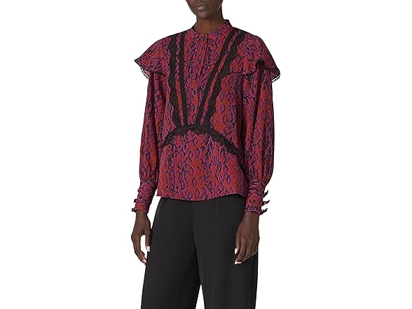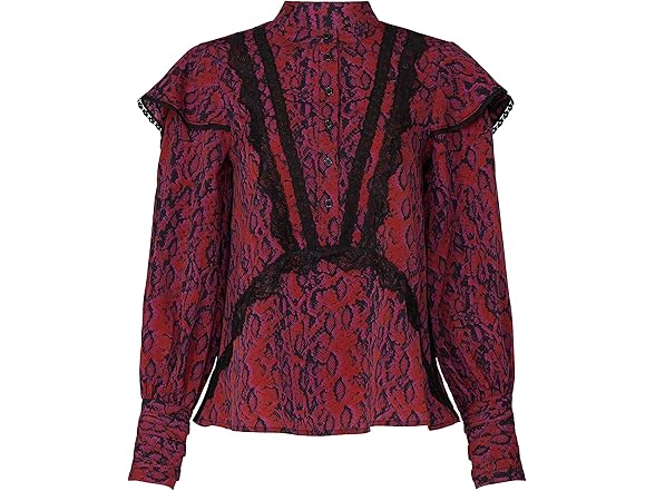 Koché Collective Rent the Runway Pre-Loved Lace Trim Python Top, Red, 42