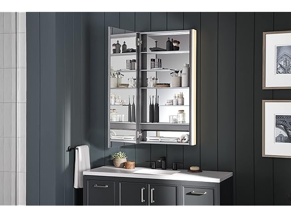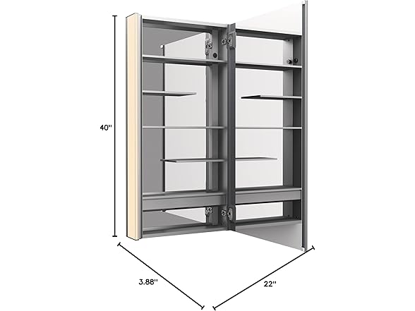 KOHLER K-81148-SLE-DA Maxstow Medicine Cabinet with LED Light, Mirror Door & Staggered Shelves, Rectangular Frame, 22" x 40"