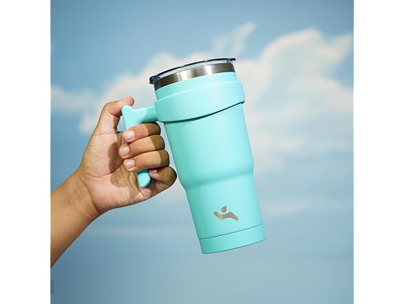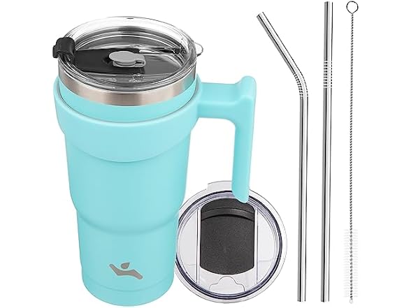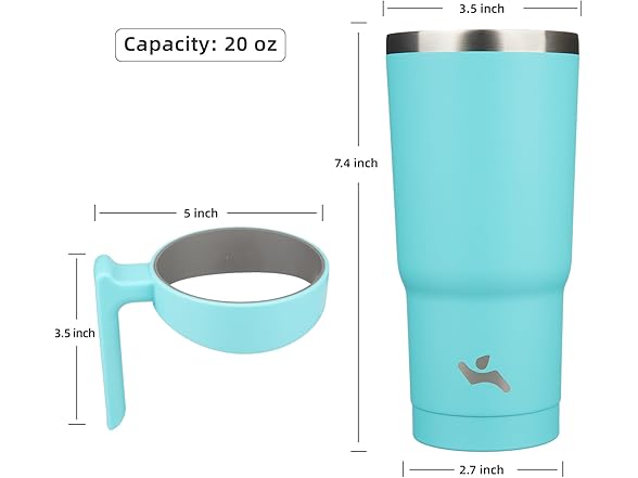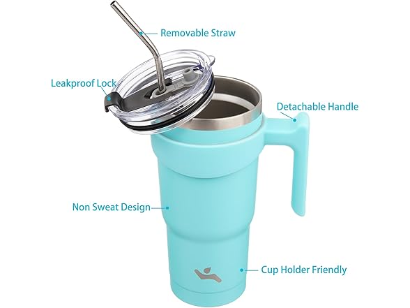 Konokyo 20 oz Tumbler with Handle and 2 Straw 2 Lid, Insulated Water Bottle Stainless Steel Vacuum Cup Reusable Travel Mug,Turquoise