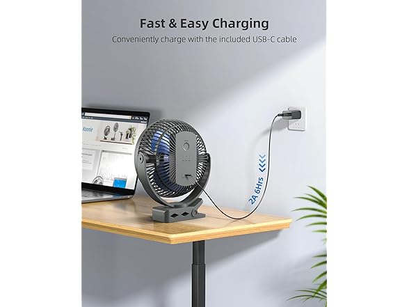 Koonie 10000mAh Rechargeable Portable Fan, 8-Inch Battery Operated Small Clip on Fan, USB Car Fan 4 Speeds, Sturdy Clamp for Office Desk Golf Cart Stroller Outdoor Travel Camping Tent Gym Treadmill (Open Box)
