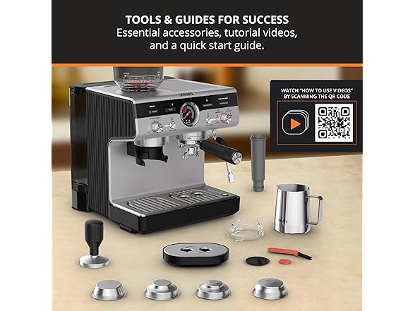 - πππ₯ππ¦π§π π§π’π’ππ¦ & ππ¨ππππ¦ ππ‘πππ¨πππ: Equipped with professional-grade accessories, tutorial videos, and a quick start guide to help you craft espresso like a pro with ease