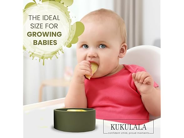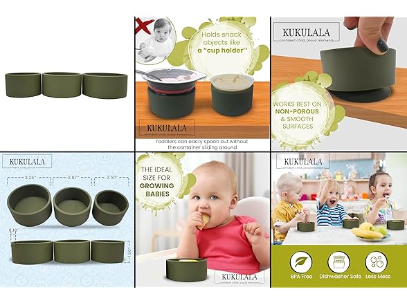 kukulala Stay Put Suction Cups - Silicone Small Bowls for Baby, Toddler, Snacks, or Small Item Storage (Olive Green), Microwave & Dishwasher Safe