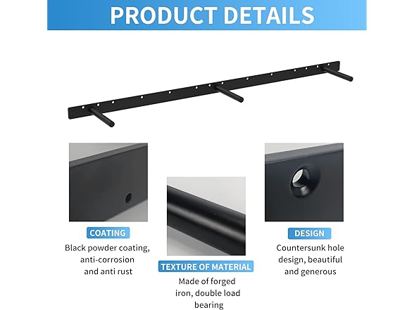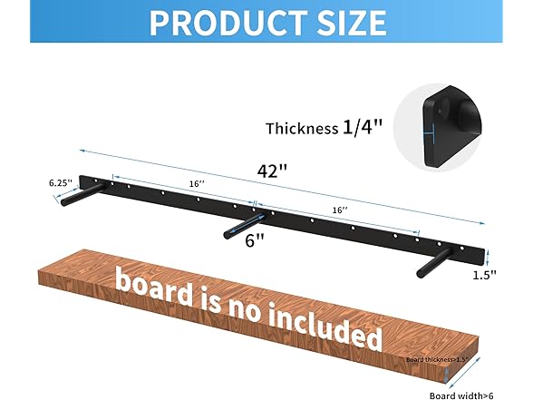 42 Inch Heavy Duty Blind Wall Mount Floating Shelf Bracket - Hidden Shelf Bracket with 150 LB Weight Capacity -3/4 Inch Solid Steel Support Rods