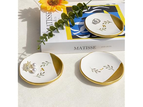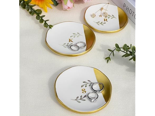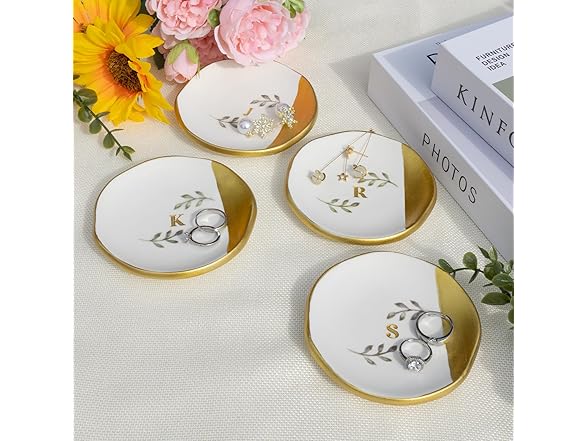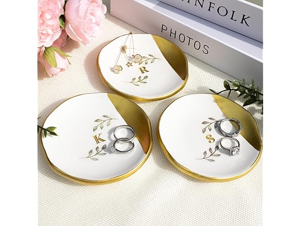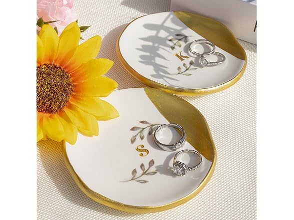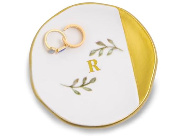 Kuppopy Jewelry Dish Tray, Initial Ring Dish, Monogrammed Ring Plate, Personalized Engagement Gift for Women, Bridal Shower & Wedding Jewelry Tray for Women, Friends, Sisters