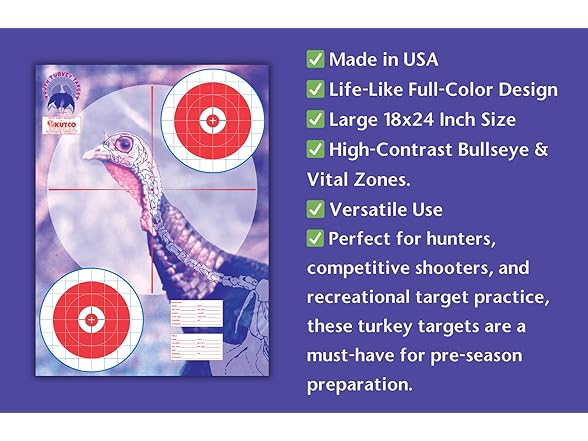 Turkey Shooting Target ‚ Full-Color Realistic Hunting Practice Paper Targets ‚ High-Visibility for Rifle, Shotgun, and Archery Training, 18'' x 24'' (50)