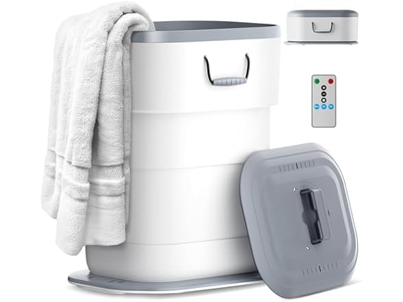 - 27L Mega Towel Warmer-Experience truly massive capacity. Unlike ordinary warmers, our 27L interior (36cm x 27.5cm x 46cm) is specifically designed to accommodate up to 4 oversized bath towels (40"x70") laid flat - no tight rolling or folding needed. This expansive heated space means your towels warm faster and more evenly, while also being able to heat multiple robes or blankets at the same time. The generous dimensions provide complete flexibility for family use, allowing everyone to enjoy perfectly warmed, fluffy towels after every shower. This isn't just a warmer - it's your family's personal warming closet.