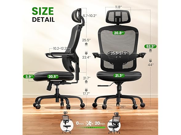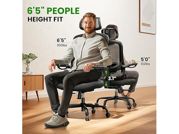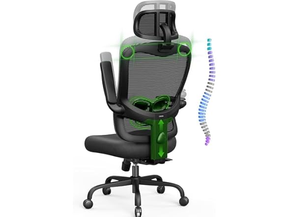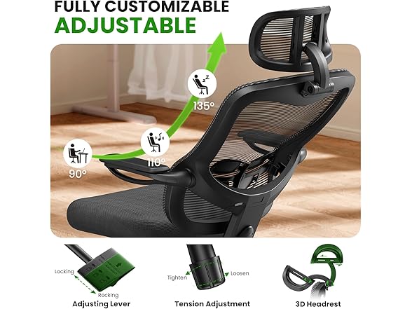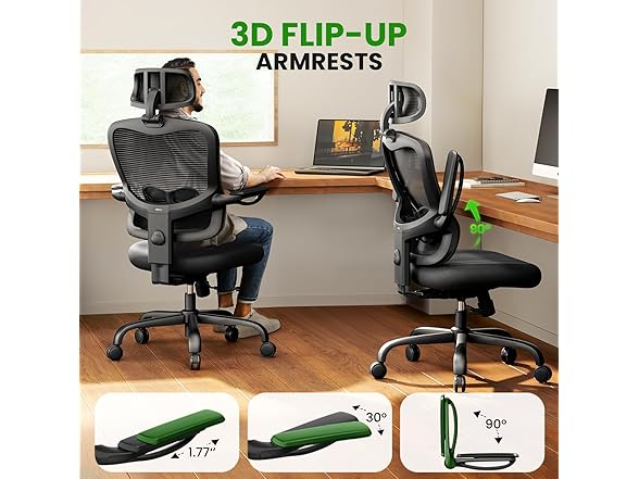 - Your Desired Adjustment, All Met: Comes with an adjustable 3D headrest, backrest height with lumbar support, 90-135° tilt with 3-angle lock, and 3D flip-up armrests, our home office chair provides customized settings and all-around support and relaxation. Say goodbye to back, neck, and shoulder pain with this ergonomic desk chair.