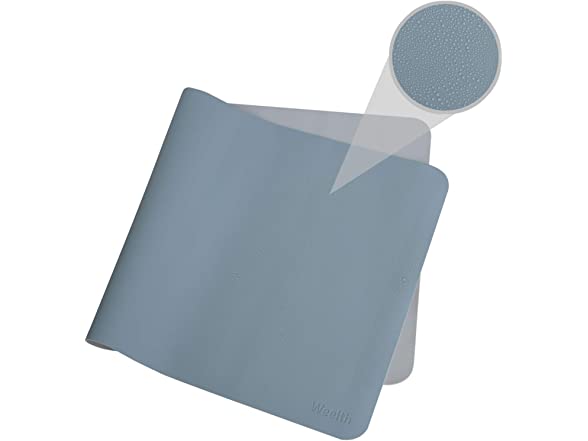 In the Box: (1) Large Office Desk Pad, 35.4" x 17" Waterproof Desk Pad Protector PU Leather Dual-Sided Desk Writing Pad for Office/Home (Light Blue/Sliver, 35.4" x 17")