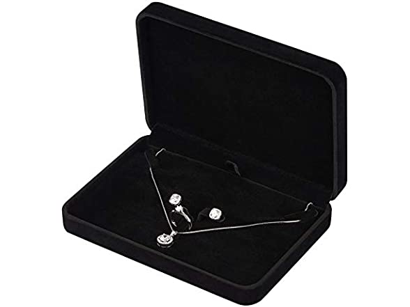 Large Velvet Jewelry Set Box, Big Necklace and Ring Earring Pendant Gift Box, Pearl Necklace/Chunky Necklace Jewelry Storage Case (Black)