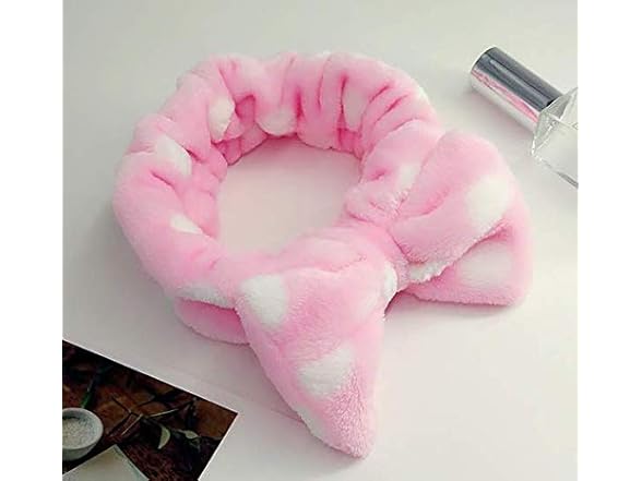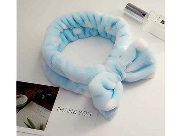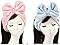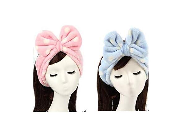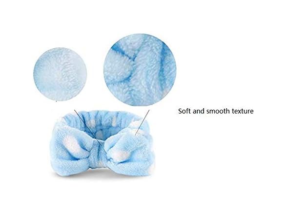 LASSUM 2 Pcs Soft Caroset Fleece Hairlace Headband, Bowknot Elastic Hair Band Hairlace for Washing Face Shower Spa Makeup,Pink+Blue